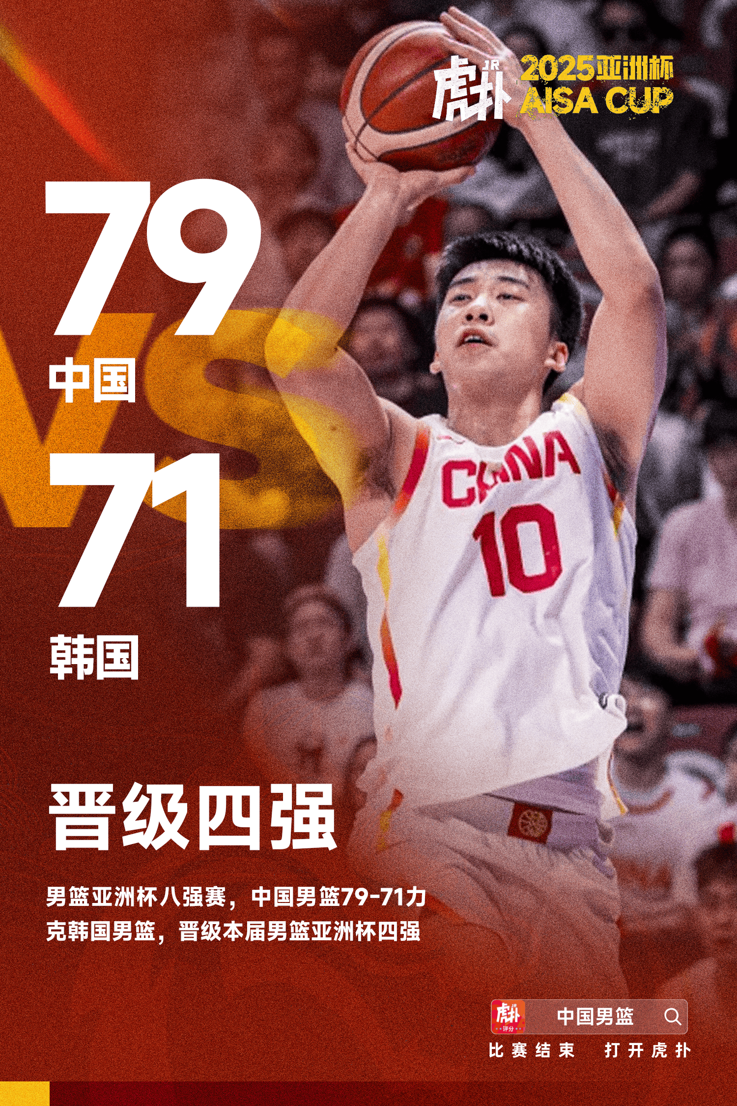 虎扑08月14日讯 男篮亚洲杯八强赛:中国男篮力克韩国男篮,晋级本届男篮亚洲杯四强。