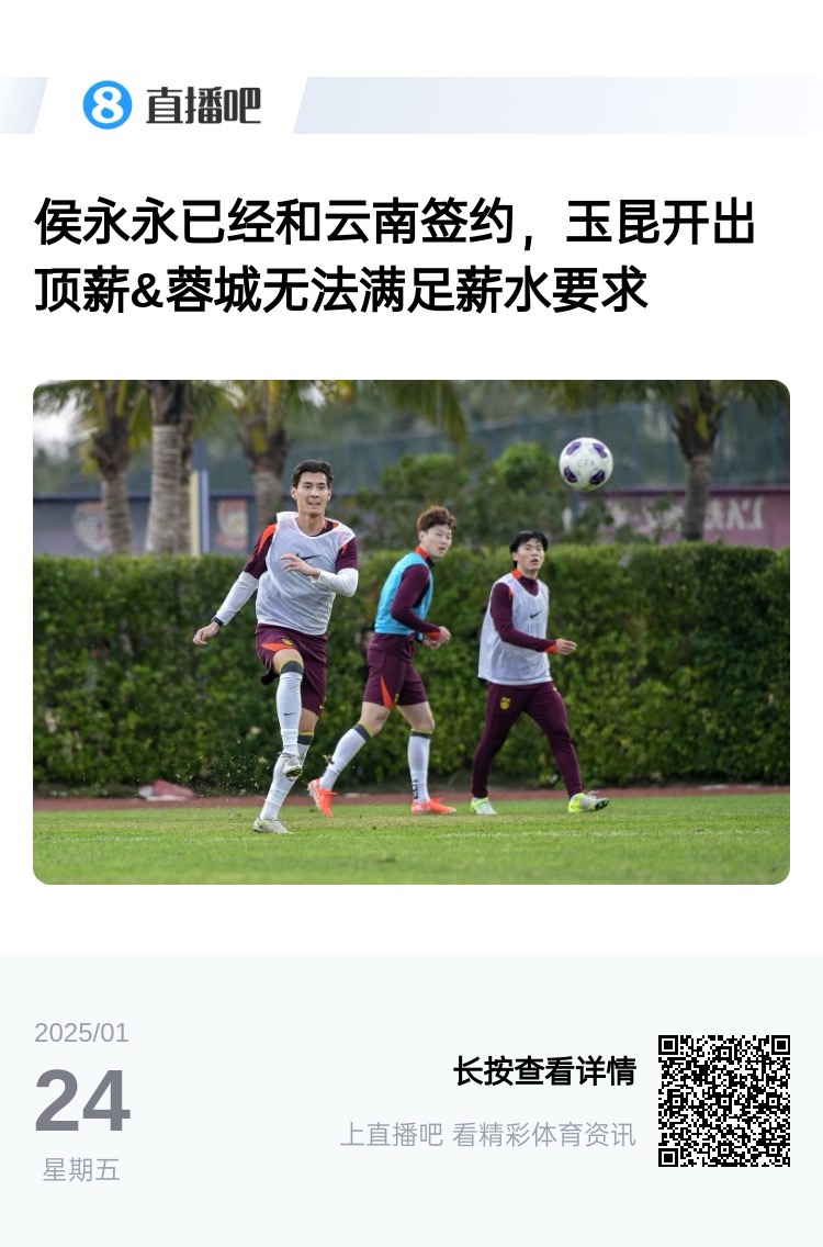 全程报谈了侯永永的加盟历程,从启动独家爆料牵手云南玉昆,到之后两边琢磨产生小插曲成齐蓉城介入,再到临了还是遴荐云南玉昆。
