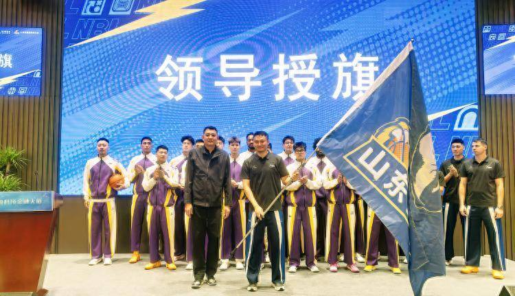 授球与授旗庆典是出征庆典的中枢递次。山东省篮球畅通协会副会长、济南市球类畅通中心布告、主任赵峰将标识团队精神与比赛中枢的篮球授予球队队长,山东省篮球协会会长巩晓彬则将标识军队灵魂与前进认识的队旗授予主教练王汝恒。王汝恒挥旗的短暂,全场讨厌达到偏激,旗号所指,尽显出征步地。